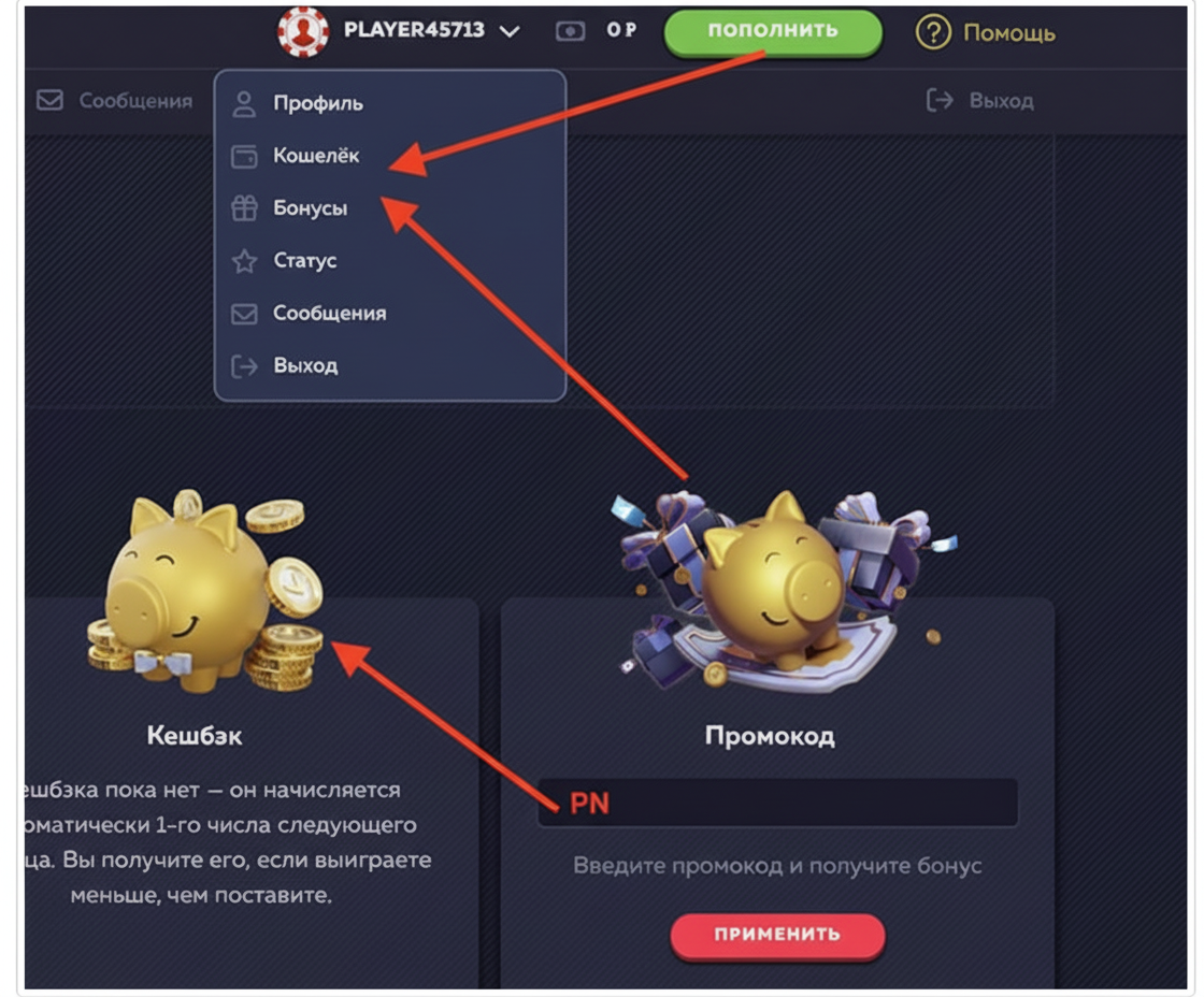 - Кошелек: контролируйте свои транзакции, вносите средства и выводите выигрыши.